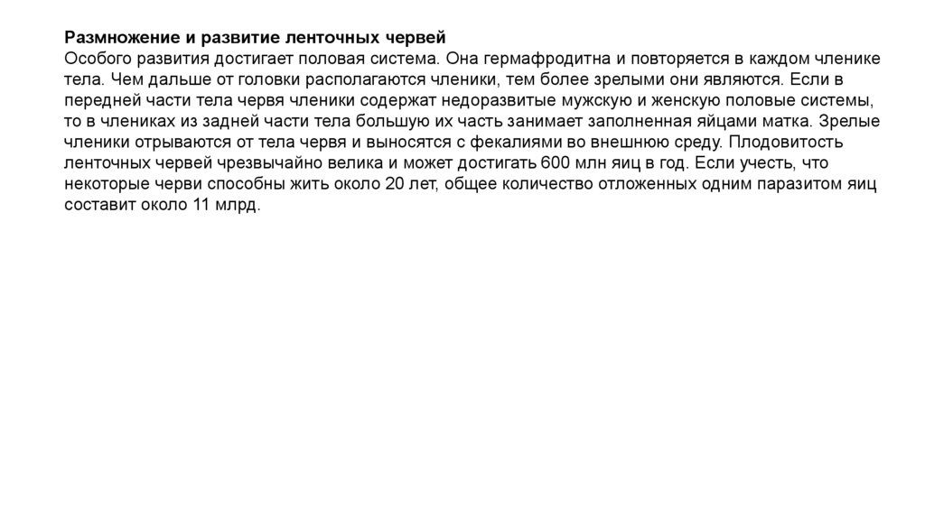яйца. Чтобы их отложить, самка через прямую кишку выползает из анального отверстия, откладывает