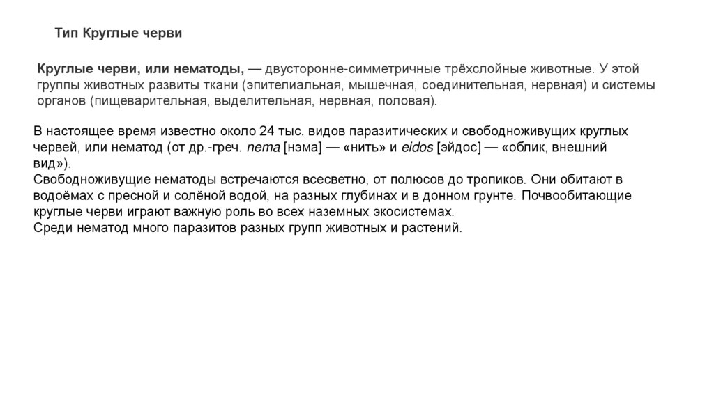 Многообразие паразитических круглых червейНаиболее известными представителями круглых червей — паразитов человека являются