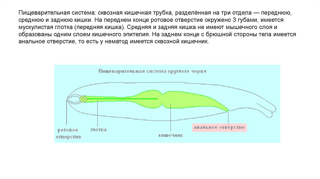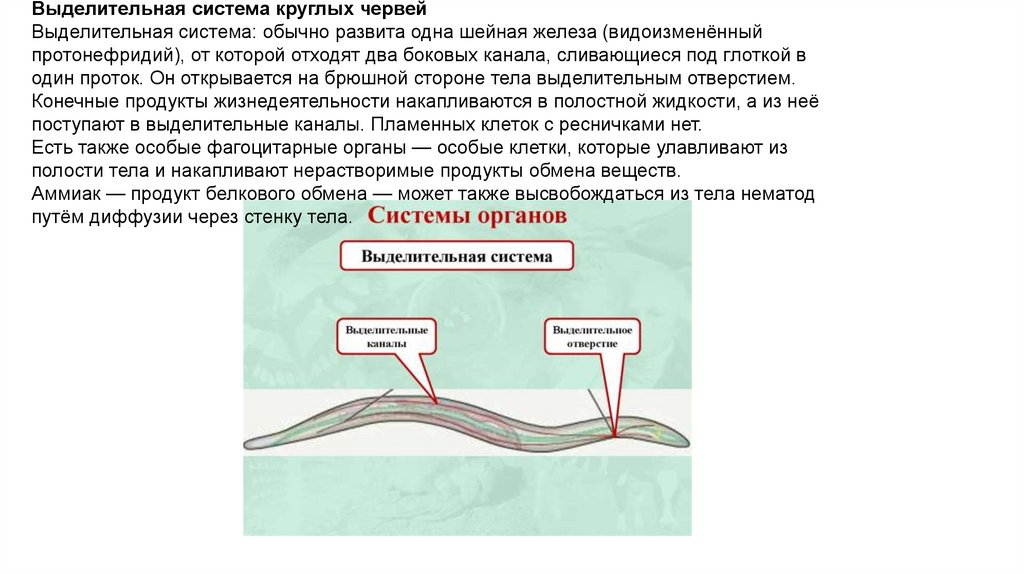 Выделительная система круглых червейВыделительная система: обычно развита одна шейная железа (видоизменённый
