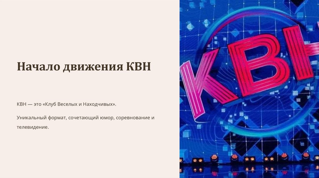 Начало движения КВНКВН — это «Клуб Веселых и Находчивых».