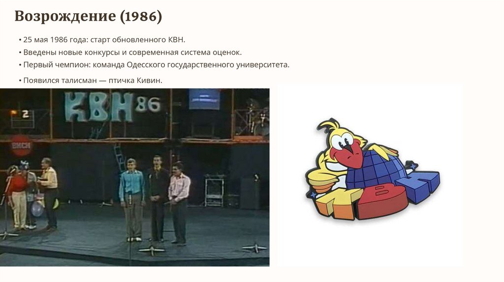Возрождение (1986)• 25 мая 1986 года: старт обновленного КВН.