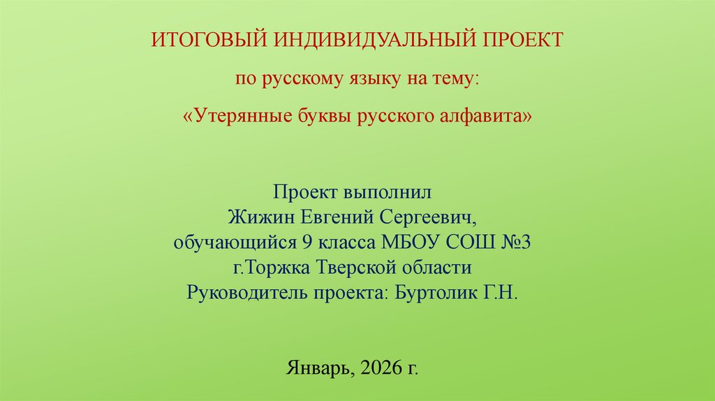 1. ИТОГОВЫЙ ИНДИВИДУАЛЬНЫЙ ПРОЕКТ по русскому языку на тему: «Утерянные буквы русского алфавита»