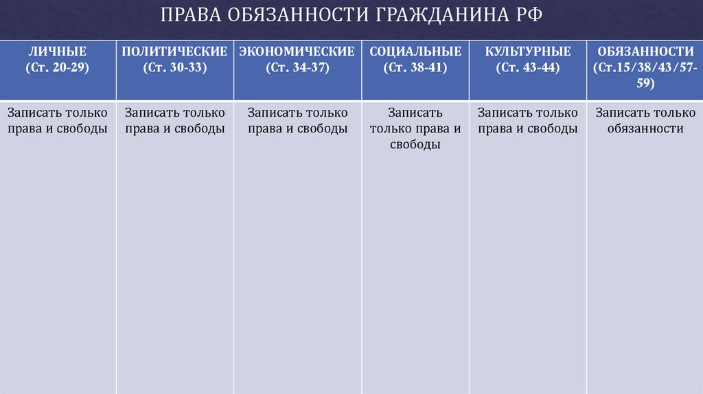 ПРАВА ОБЯЗАННОСТИ ГРАЖДАНИНА РФЛИЧНЫЕ