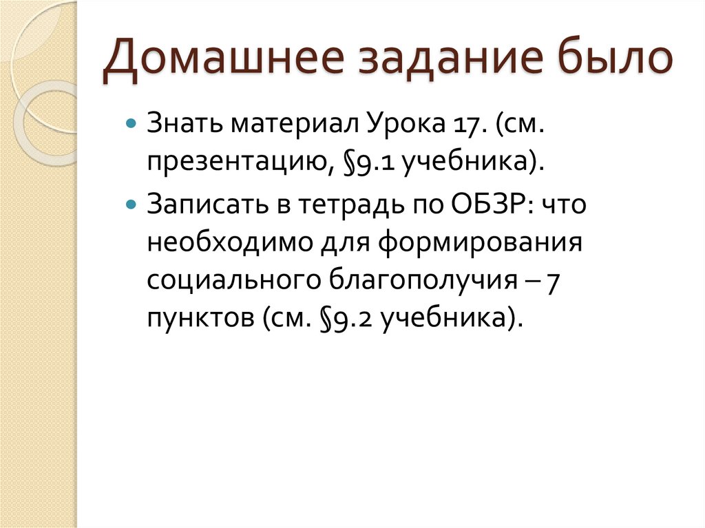 Знать материал Урока 17. (см.презентацию, §9.1 учебника).