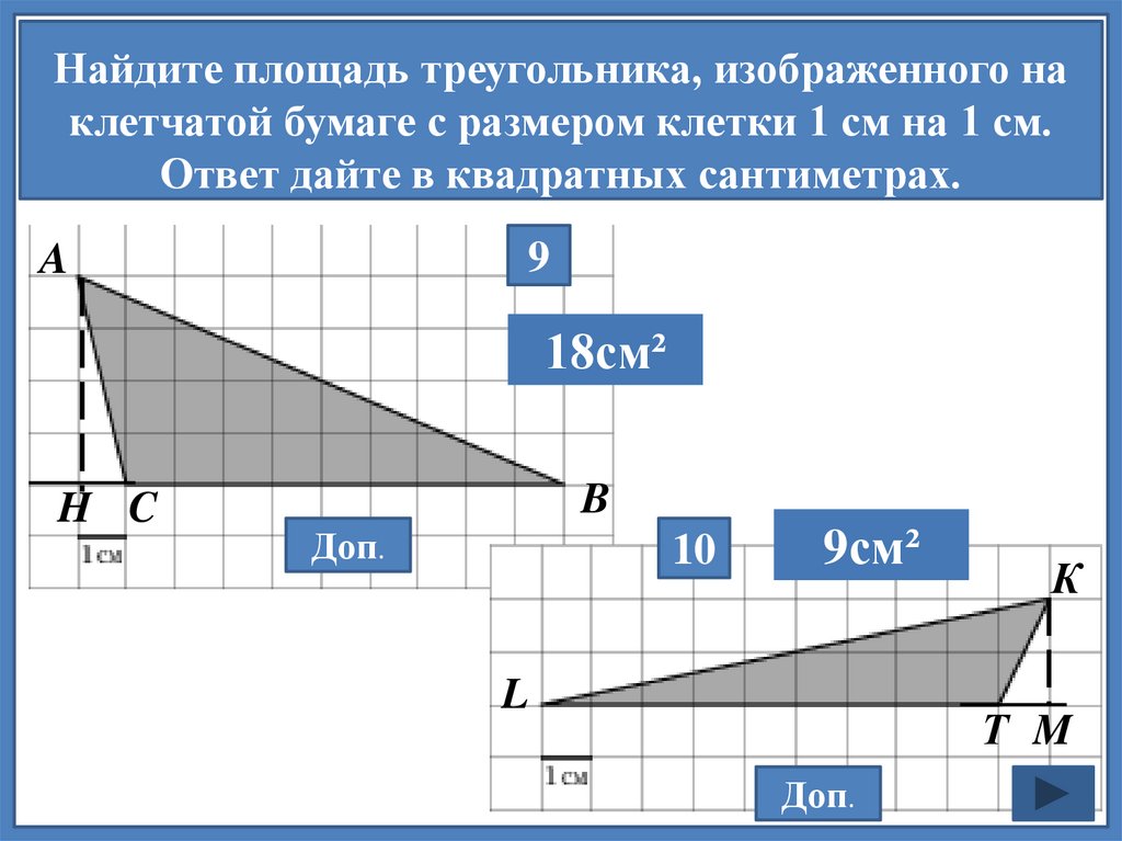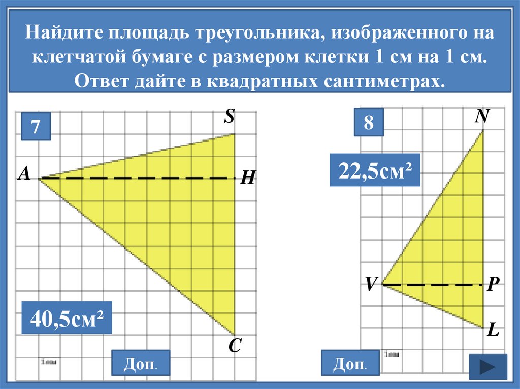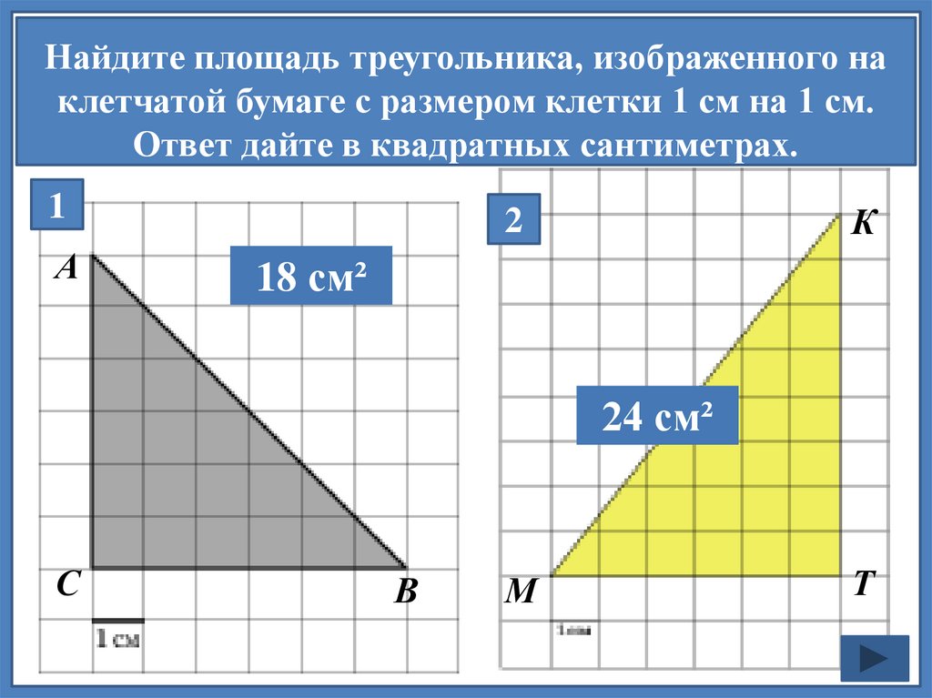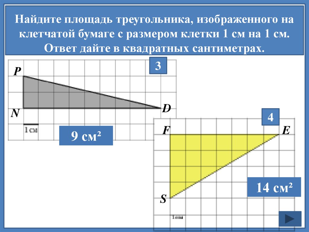 Найдите площадь треугольника, изображенного наклетчатой бумаге с размером клетки 1 см на 1 см.