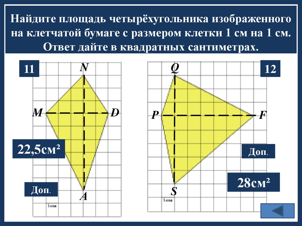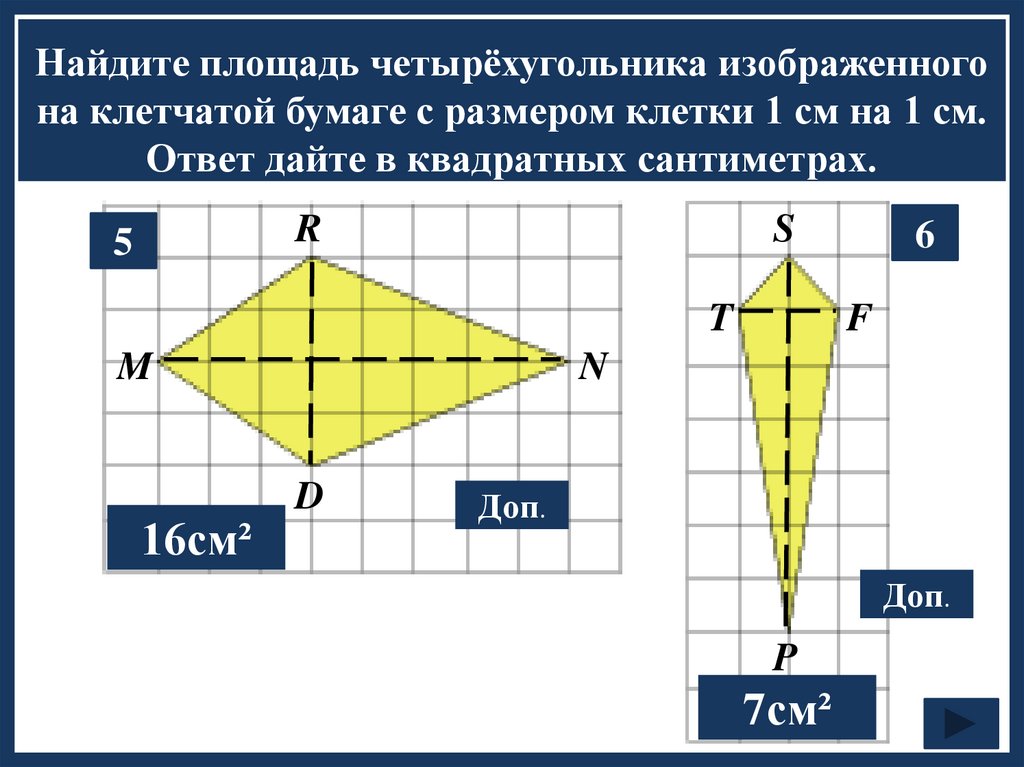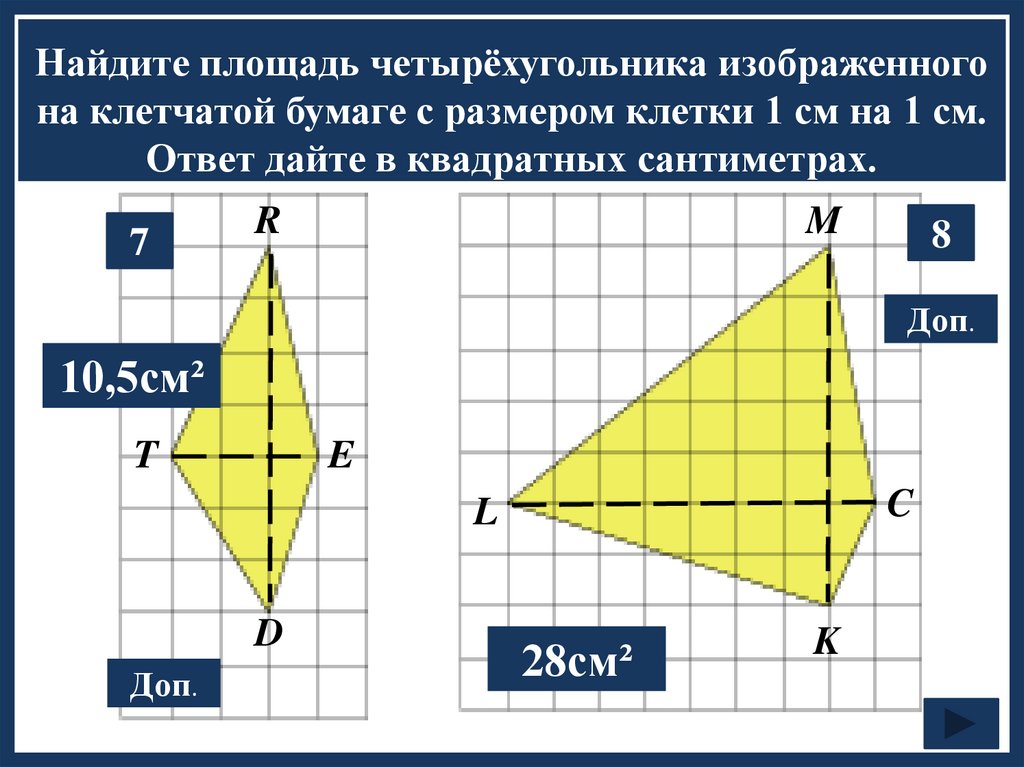 Найдите площадь четырёхугольника изображенногона клетчатой бумаге с размером клетки 1 см на 1 см.