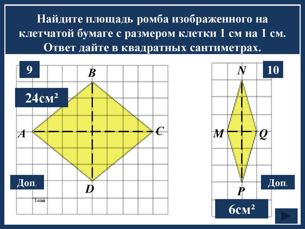 Найдите площадь ромба изображенного наклетчатой бумаге с размером клетки 1 см на 1 см.