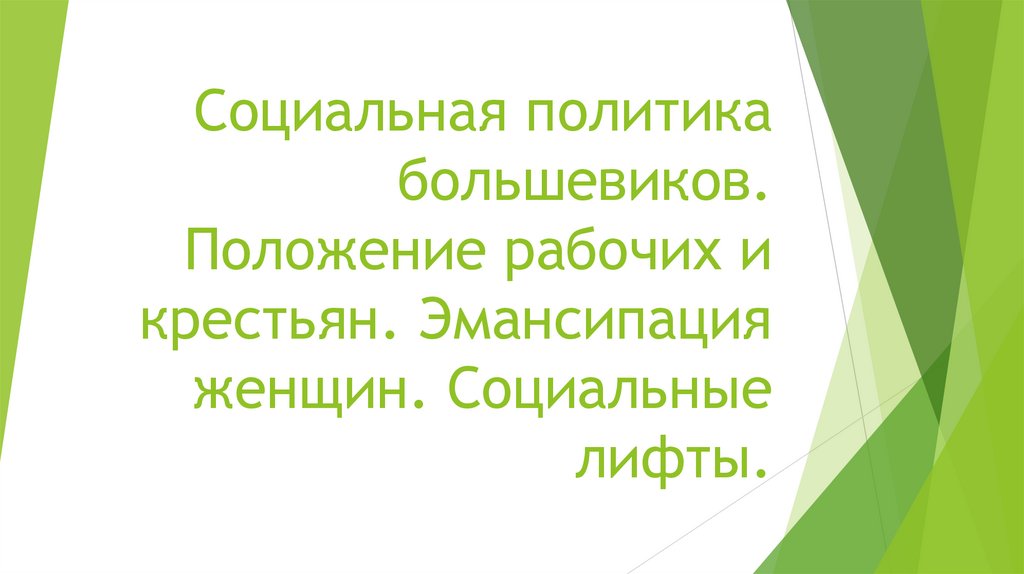 1. Социальная политика большевиков. Положение рабочих и крестьян. Эмансипация женщин. Социальные лифты.