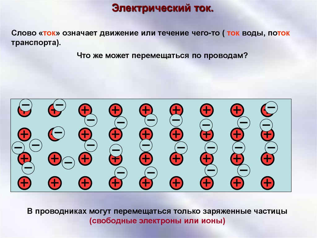 Электрический ток.Слово «ток» означает движение или течение чего-то ( ток воды, поток