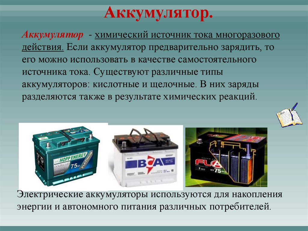 Аккумулятор.Аккумулятор - химический источник тока многоразового