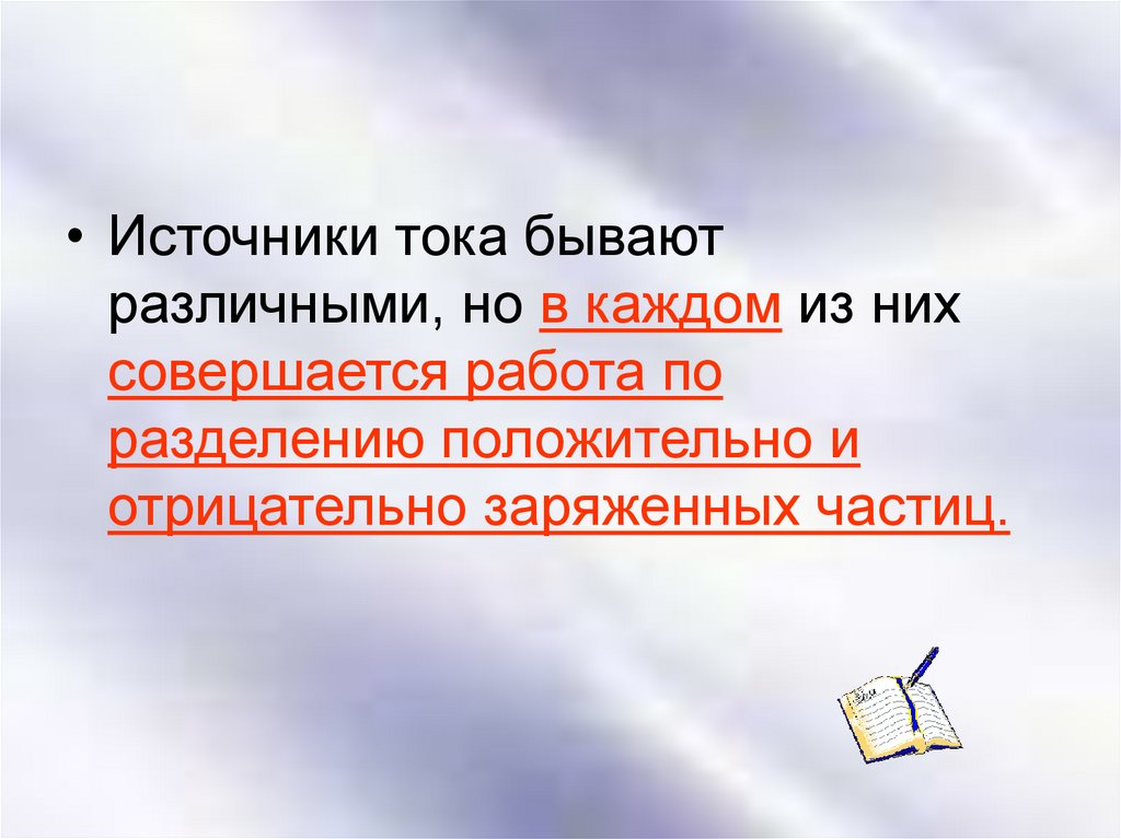• Источники тока бываютразличными, но в каждом из них