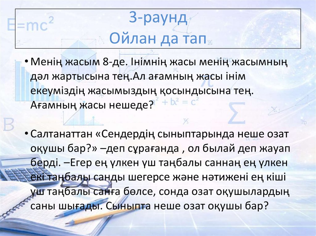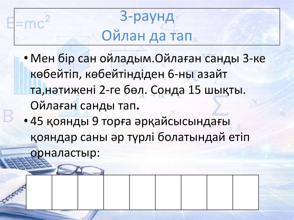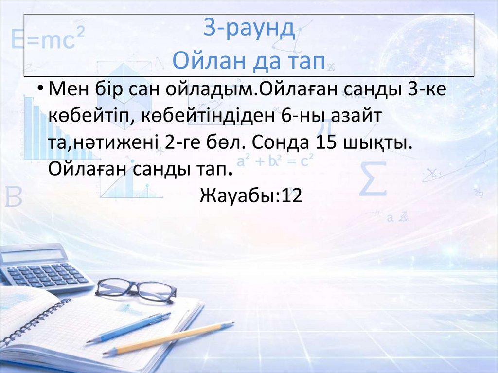 • Мен бір сан ойладым.Ойлаған санды 3-ке
