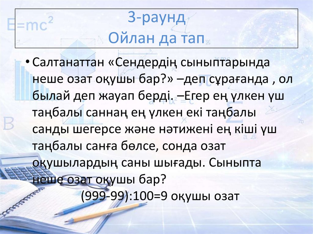 берді. –Егер ең үлкен үш таңбалы саннаң ең үлкен