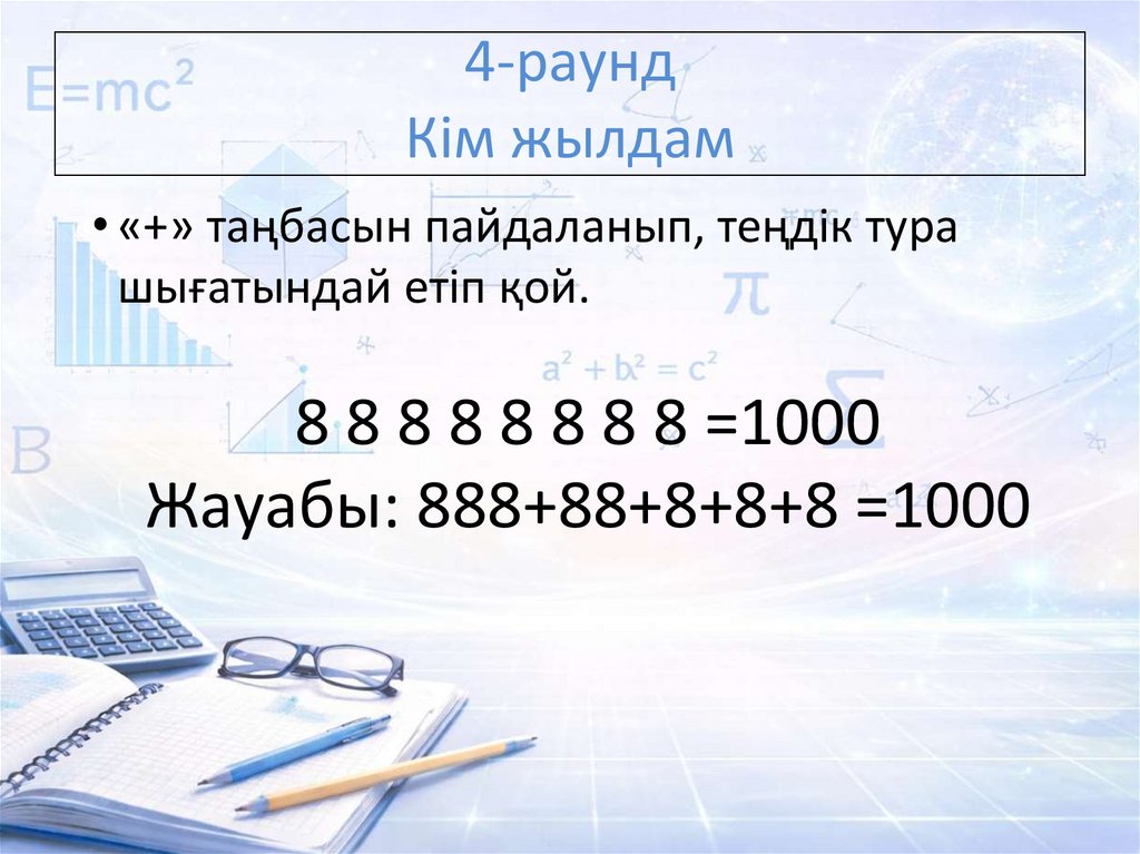 Жауабы: 888+88+8+8+8 =1000