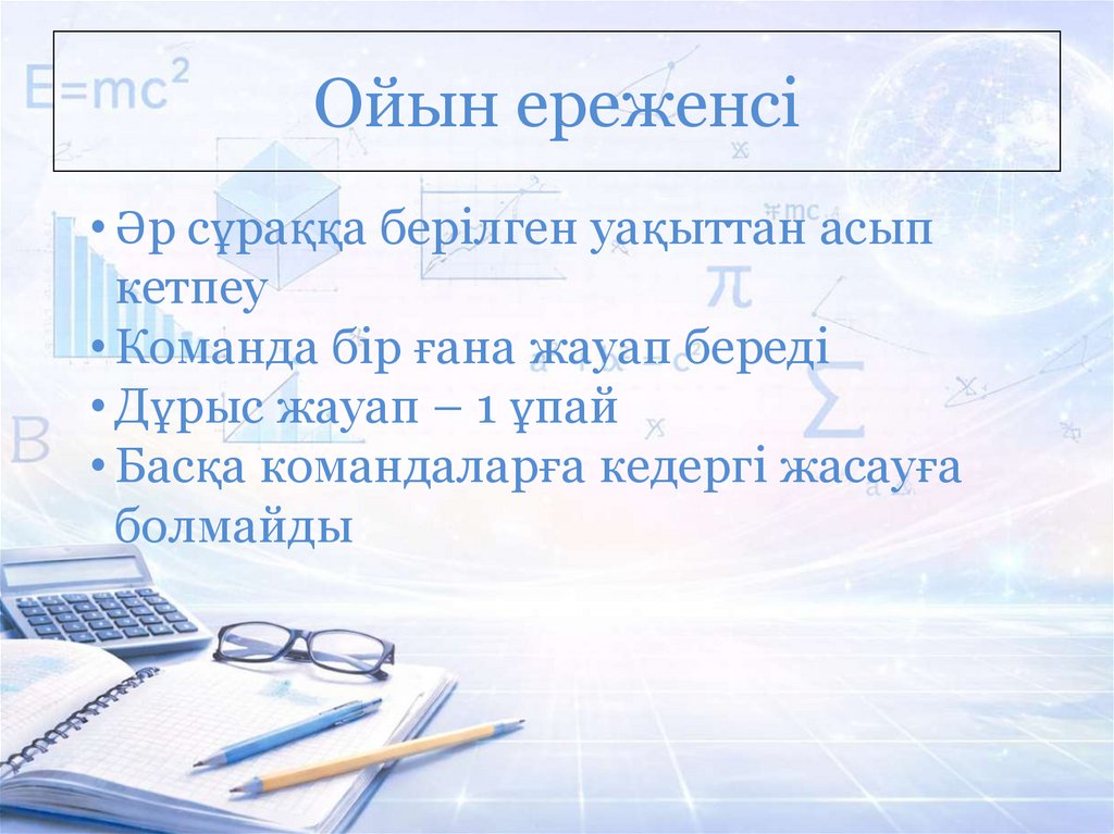 Ойын ереженсі• Әр сұраққа берілген уақыттан асып