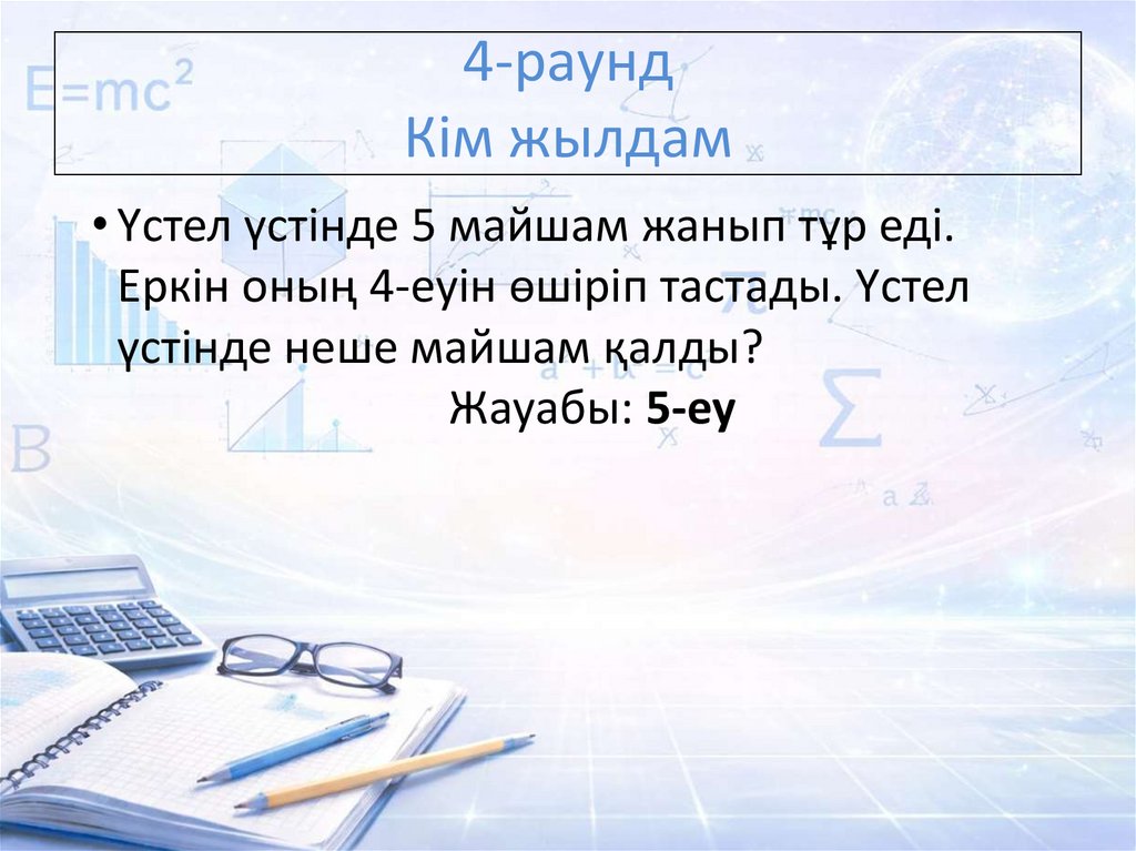 • Үстел үстінде 5 майшам жанып тұр еді.