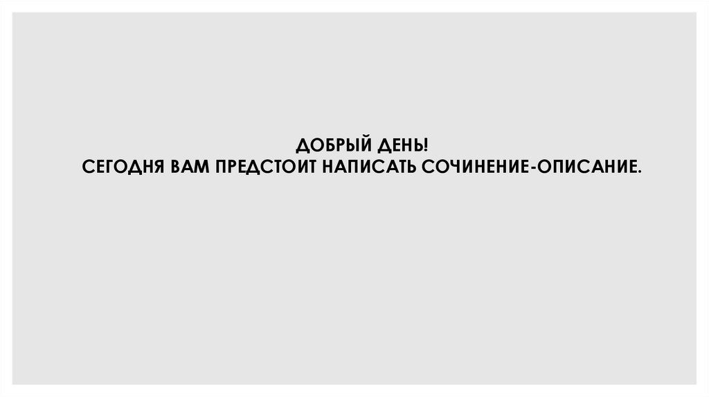 ДОБРЫЙ ДЕНЬ!СЕГОДНЯ ВАМ ПРЕДСТОИТ НАПИСАТЬ СОЧИНЕНИЕ-ОПИСАНИЕ.