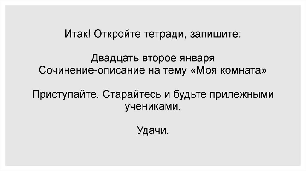 Итак! Откройте тетради, запишите:Двадцать второе января