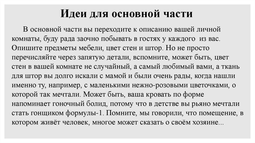 Идеи для основной частиВ основной части вы переходите к описанию вашей личной