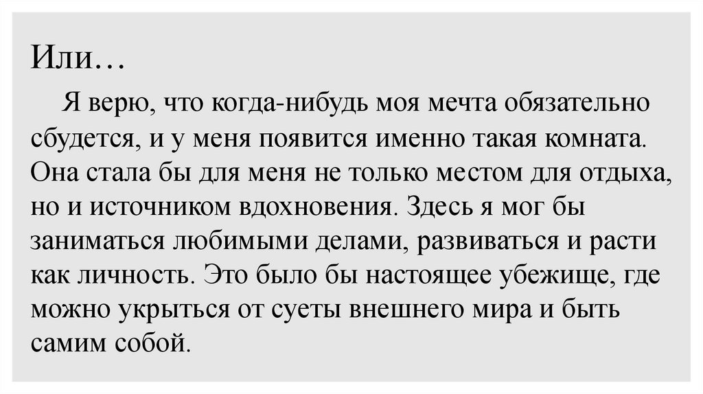 Или…Я верю, что когда-нибудь моя мечта обязательно