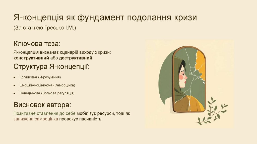 Я-концепція як фундамент подолання кризи(За статтею Гресько І.М.)