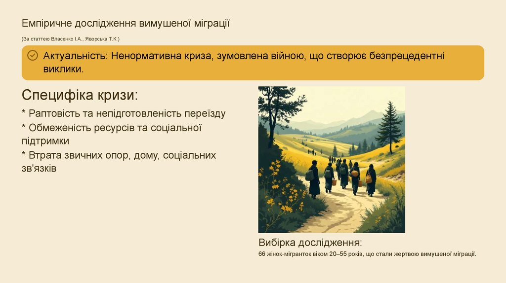 Емпіричне дослідження вимушеної міграції(За статтею Власенко І.А., Яворська Т.К.)