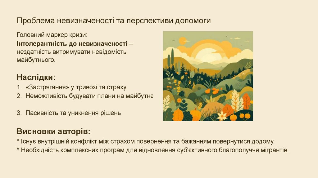 * Необхідність комплексних програм для відновлення суб'єктивного благополуччя мігрантів.