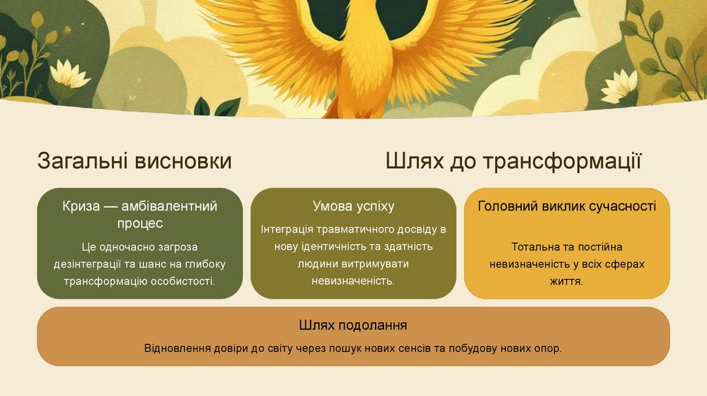Відновлення довіри до світу через пошук нових сенсів та побудову нових опор.