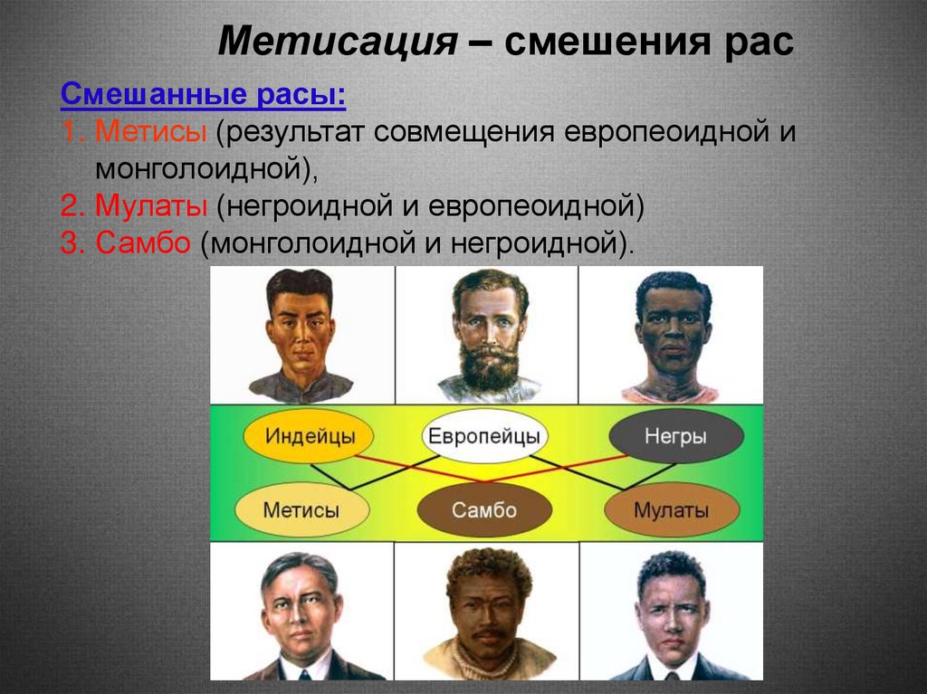 Метисация – смешения расСмешанные расы: