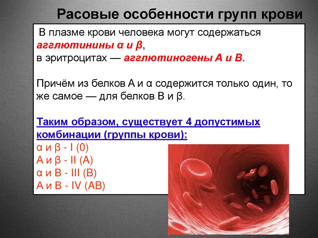 Расовые особенности групп кровиВ плазме крови человека могут содержаться