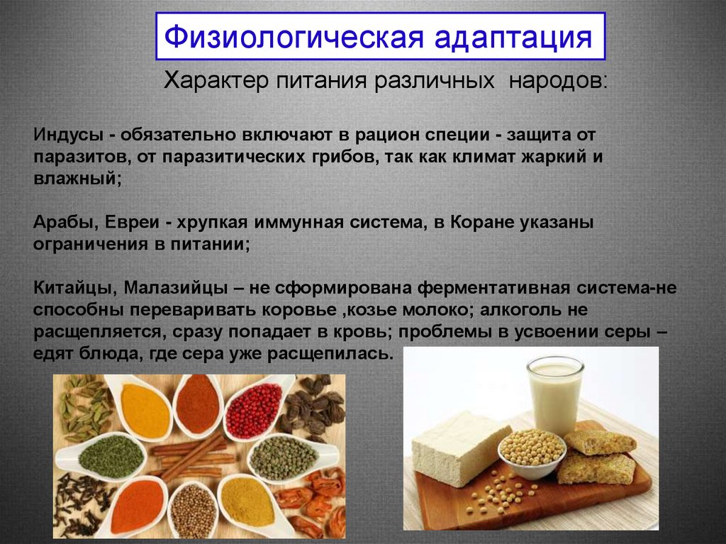 Физиологическая адаптацияХарактер питания различных народов:
