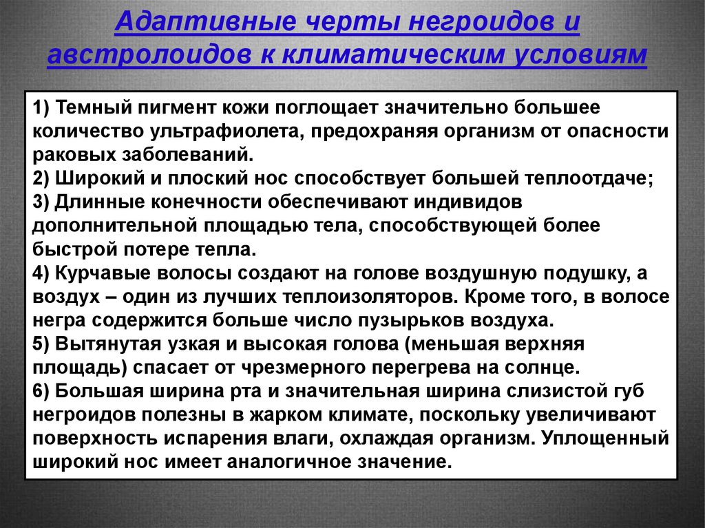 Адаптивные черты негроидов иавстролоидов к климатическим условиям