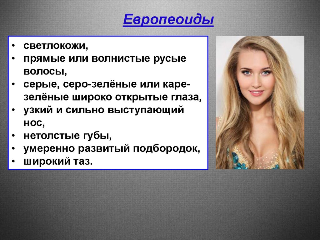 второстепенных признаков – цвета кожи, волос,