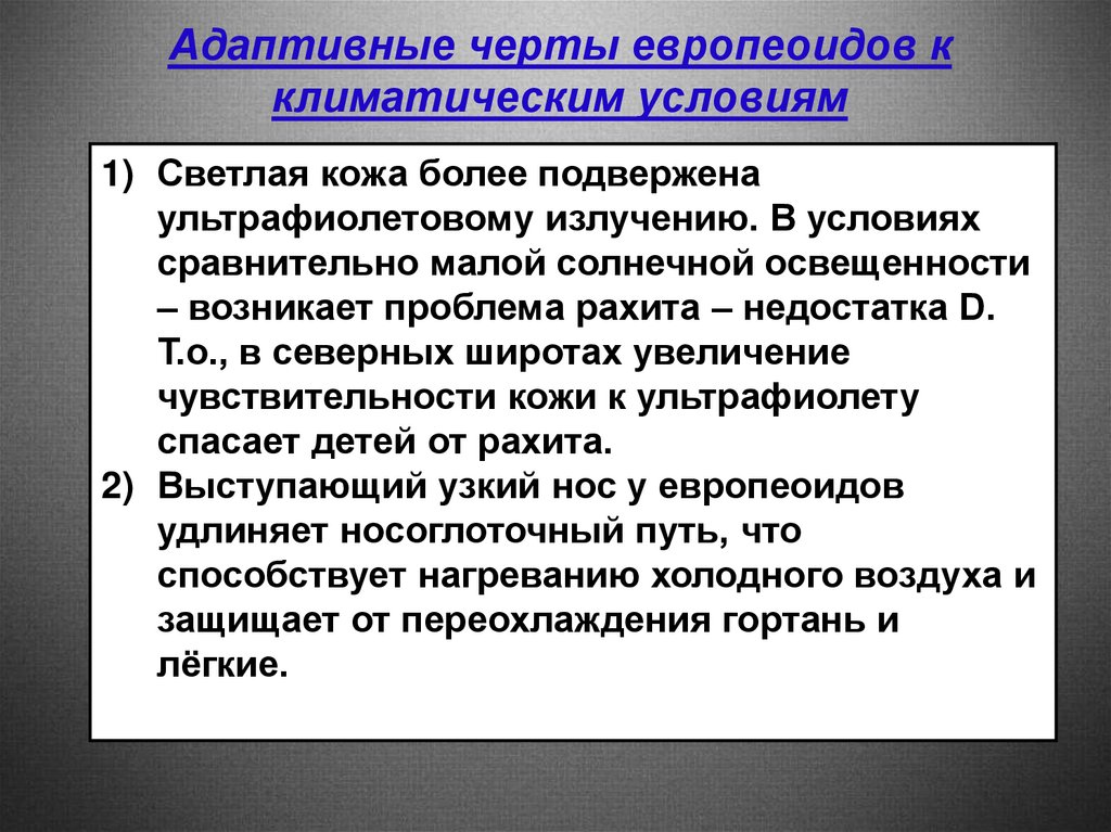 Адаптивные черты европеоидов кклиматическим условиям