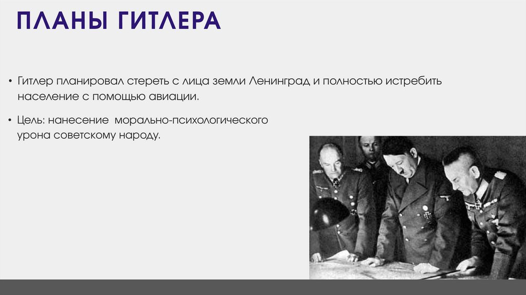 ПЛАНЫ ГИТЛЕРА• Гитлер планировал стереть с лица земли Ленинград и полностью истребить