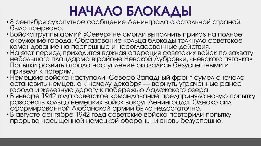 НАЧАЛО БЛОКАДЫ• 8 сентября сухопутное сообщение Ленинграда с остальной страной