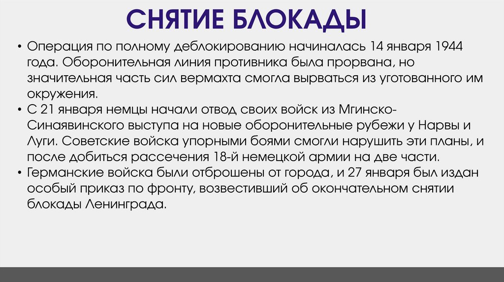 2. Как называлась военная операция по окончательному снятию блокады