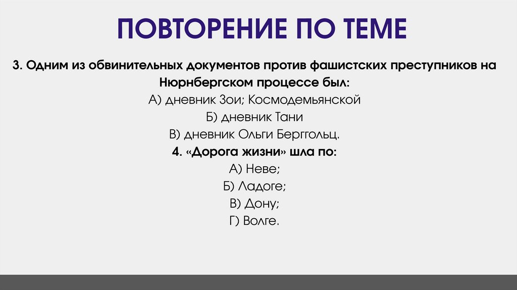 ПОВТОРЕНИЕ ПО ТЕМЕ3. Одним из обвинительных документов против фашистских преступников на