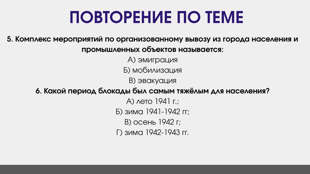 ПОВТОРЕНИЕ ПО ТЕМЕ5. Комплекс мероприятий по организованному вывозу из города населения и