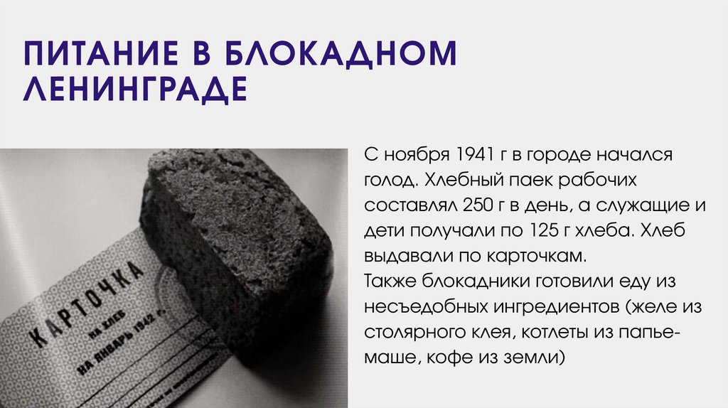 ПИТАНИЕ В БЛОКАДНОМЛЕНИНГРАДЕ