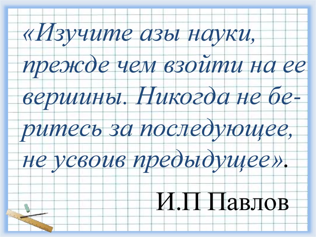 «Изучите азы науки,прежде чем взойти на ее
