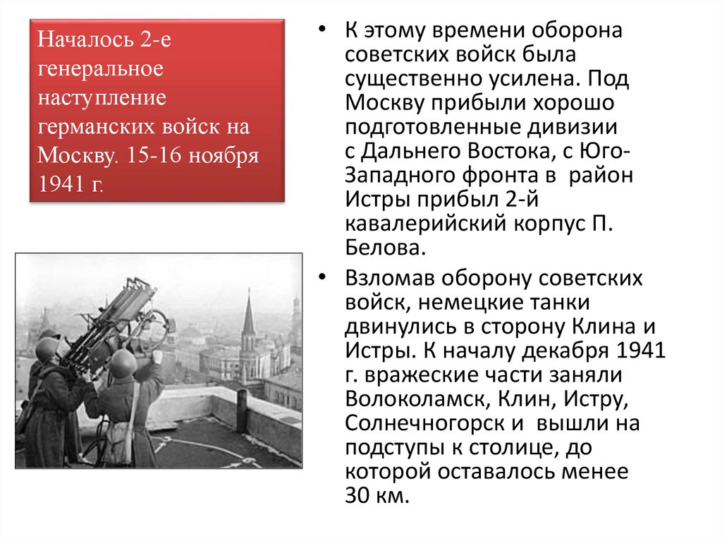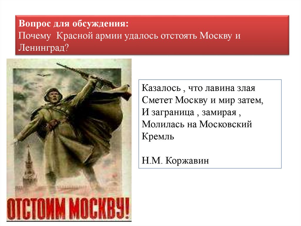 Вопрос для обсуждения:Почему Красной армии удалось отстоять Москву и