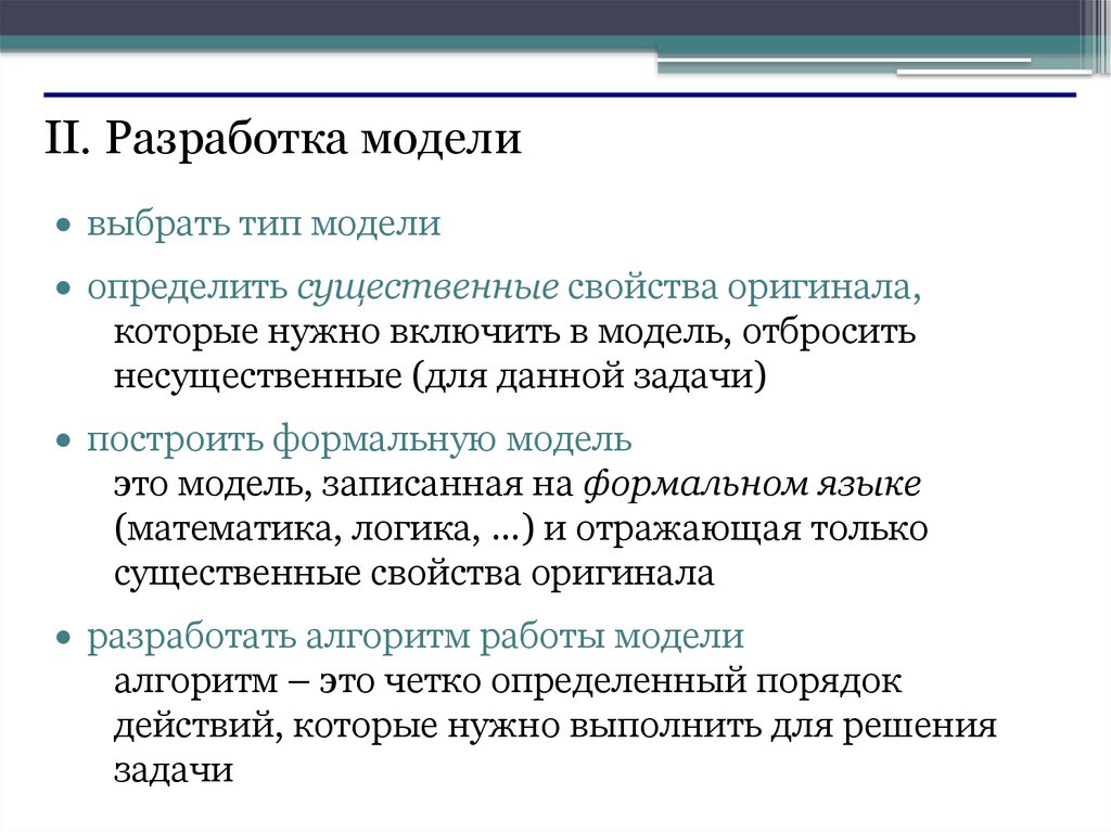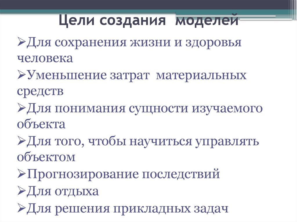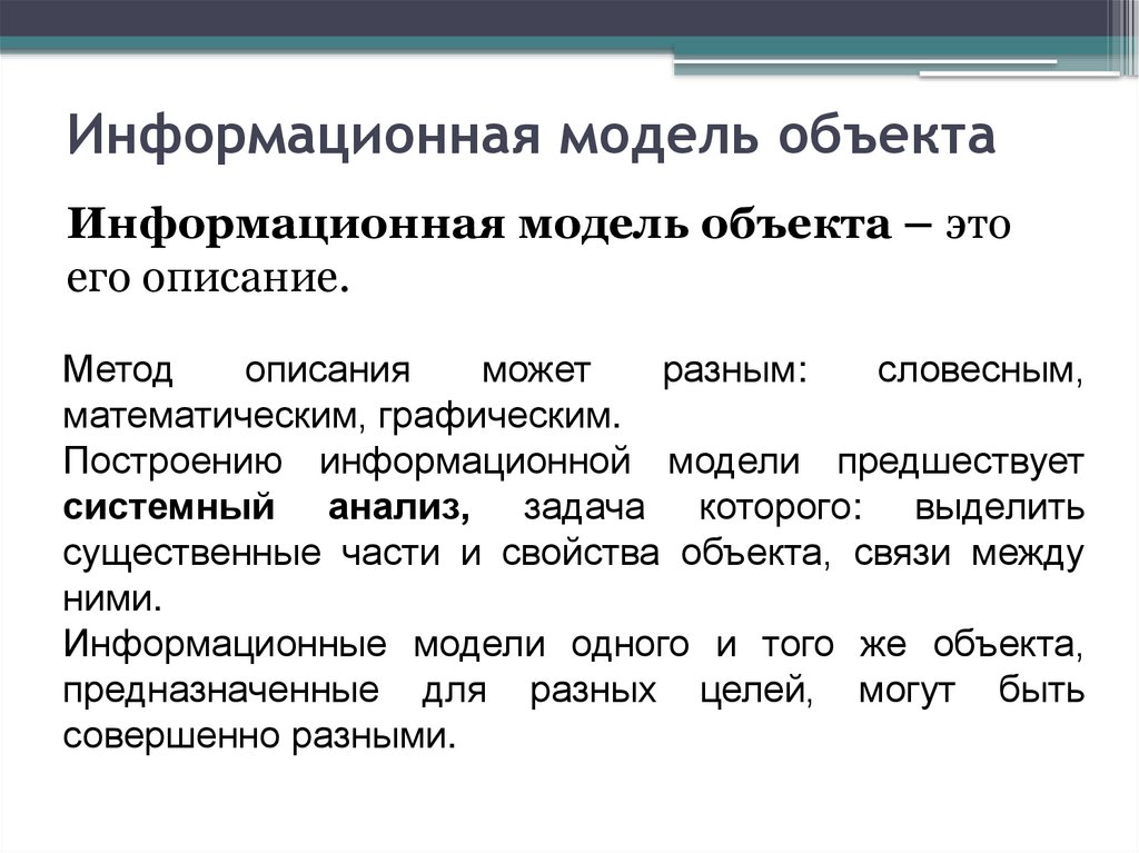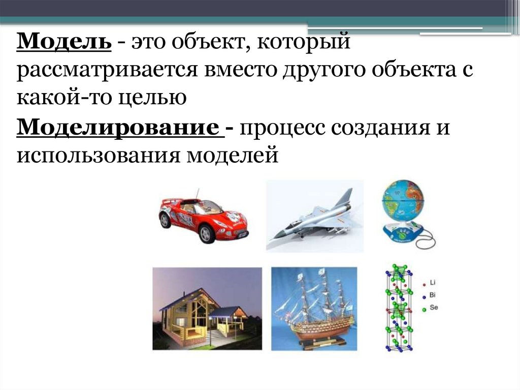 Модель - это объект, которыйрассматривается вместо другого объекта с