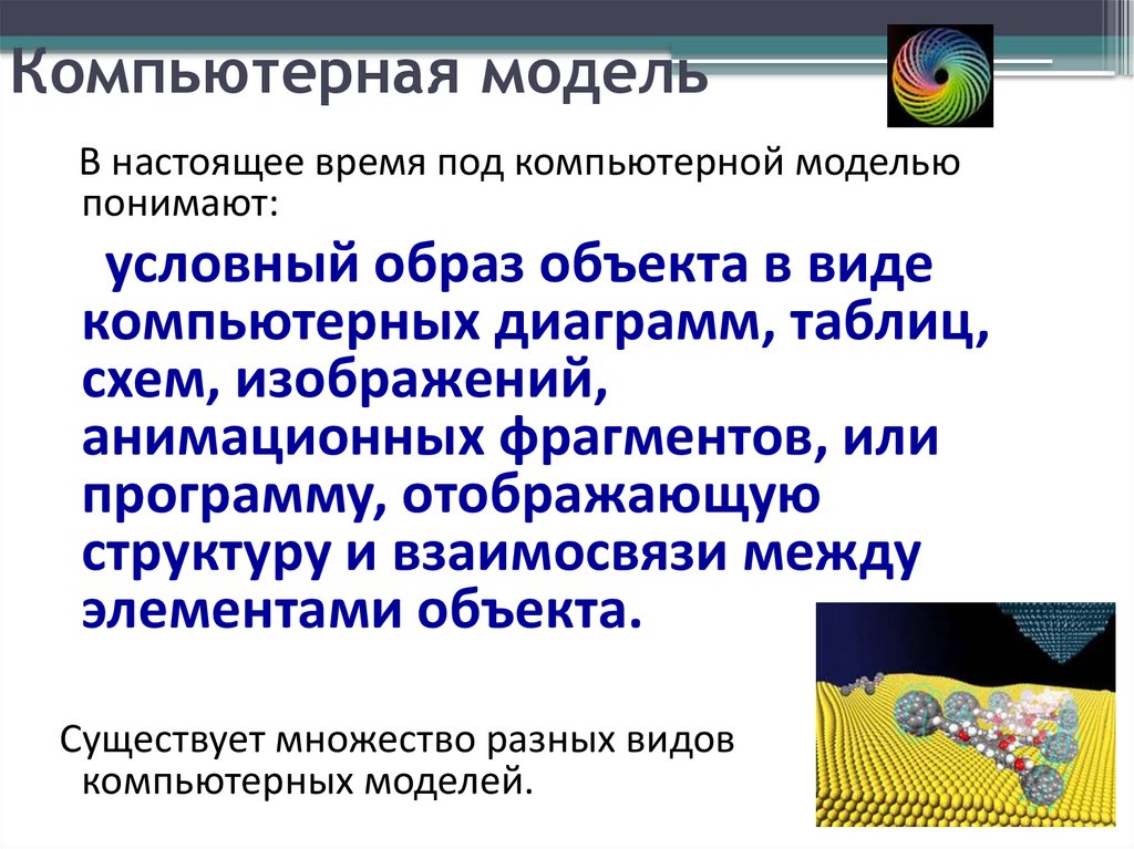 Компьютерная модельВ настоящее время под компьютерной моделью