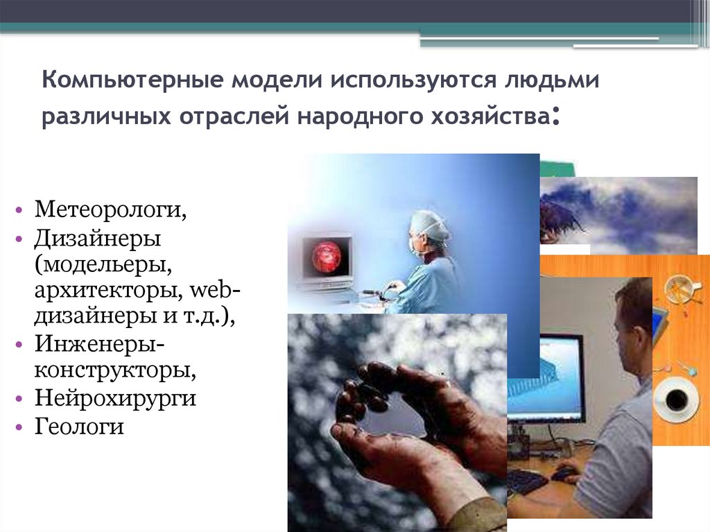 Компьютерные модели используются людьмиразличных отраслей народного хозяйства: