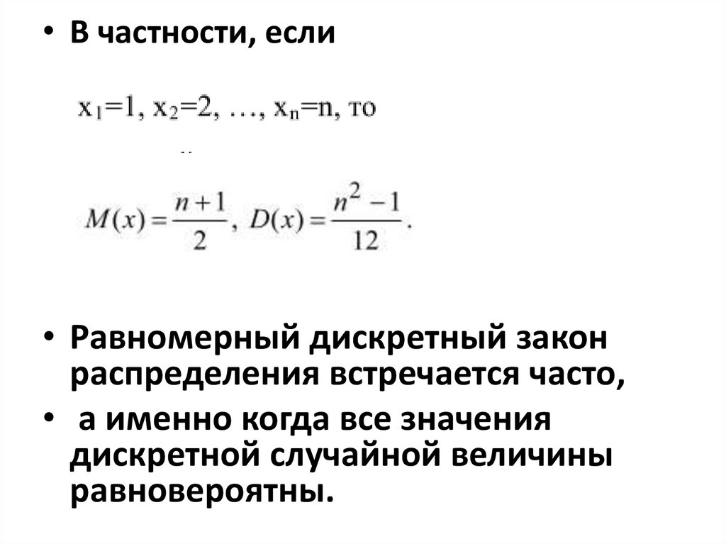 • Дискретная случайная величинаназывается равномерно распределенной,
