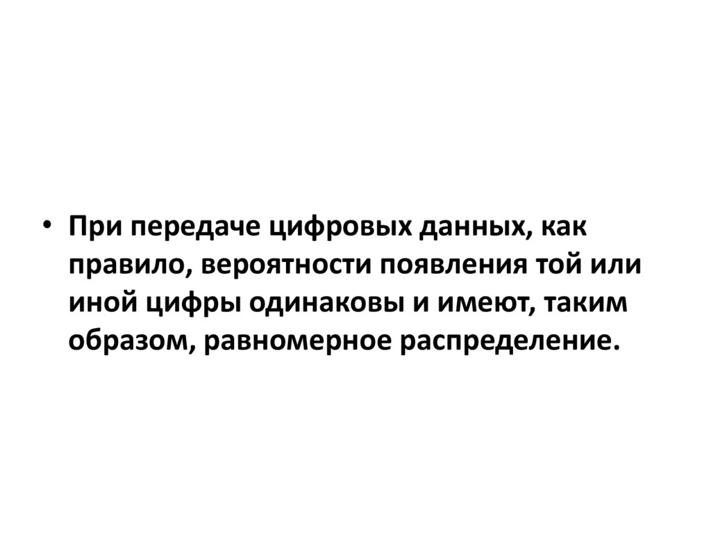 • При передаче цифровых данных, какправило, вероятности появления той или