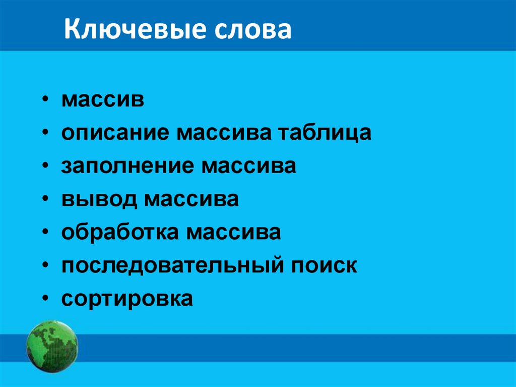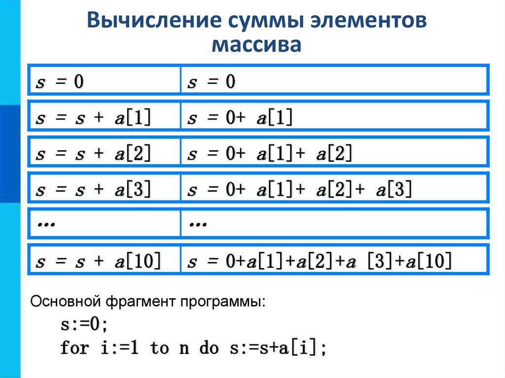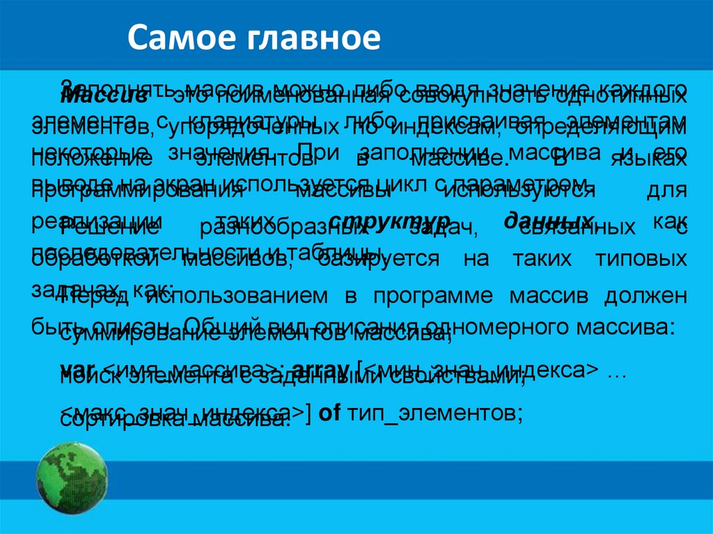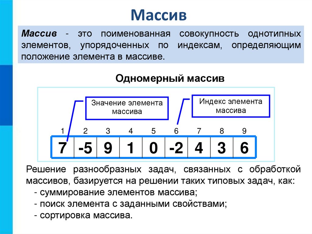 Опорный конспектМассив - это поименованная совокупность однотипных