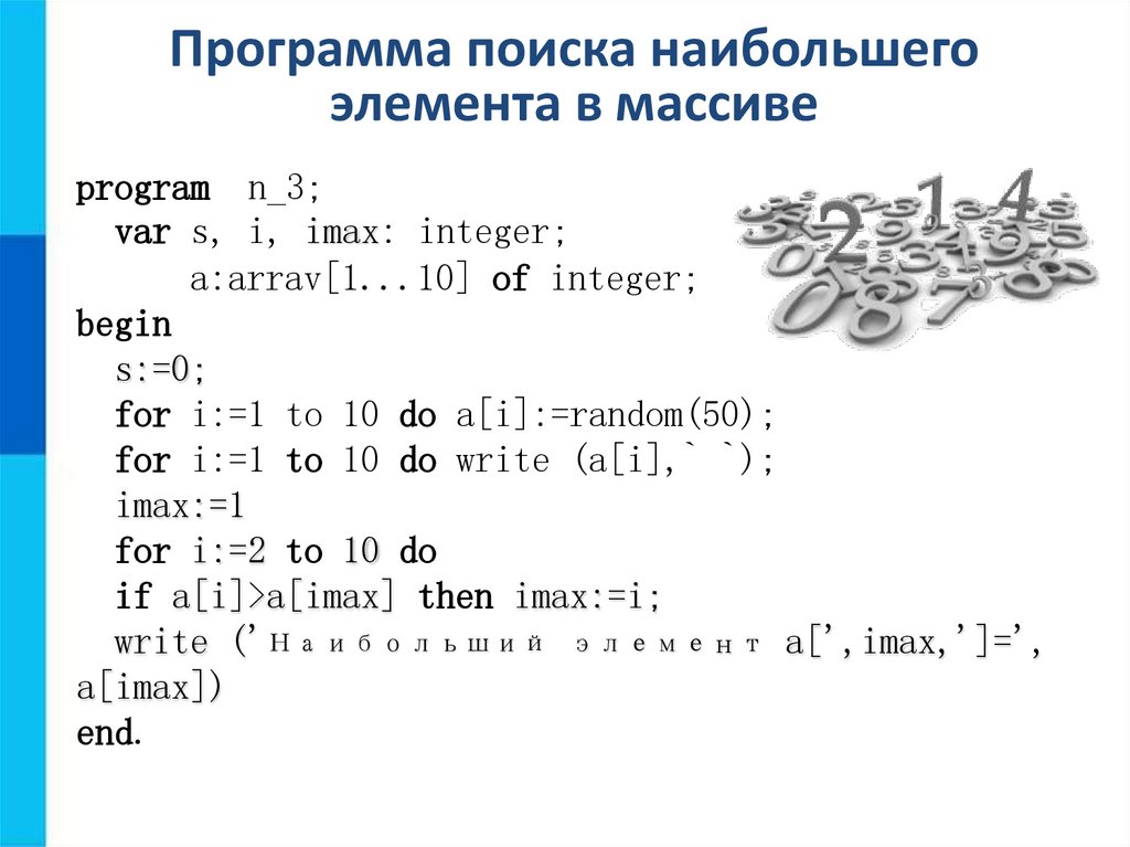 ОДНОМЕРНЫЕ МАССИВЫЦЕЛЫХ ЧИСЕЛ
