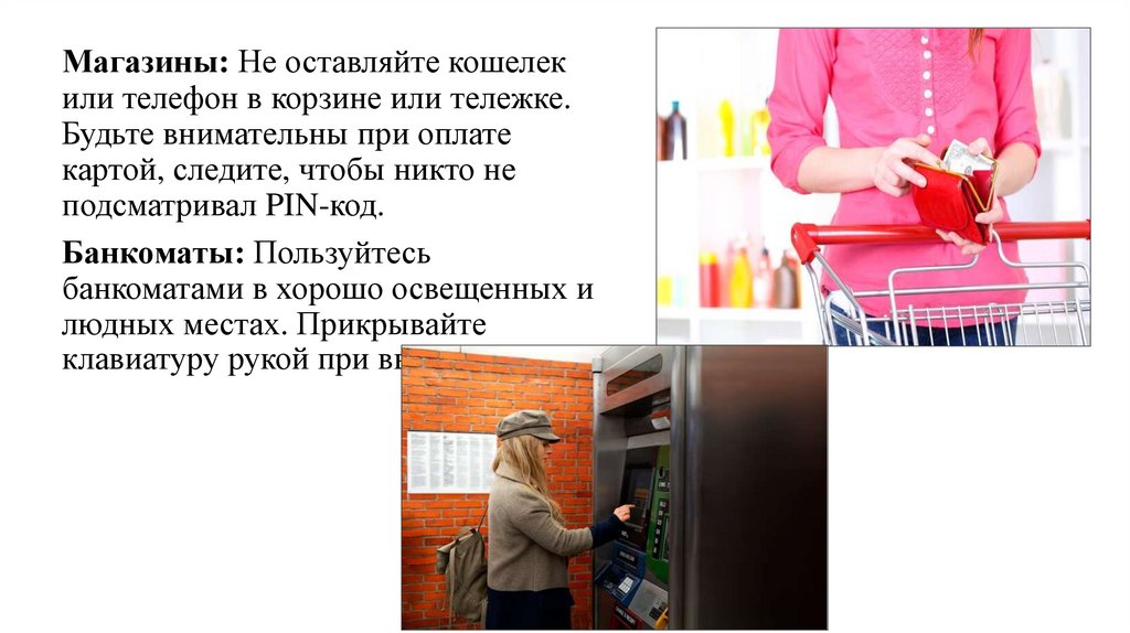 Магазины: Не оставляйте кошелекили телефон в корзине или тележке.